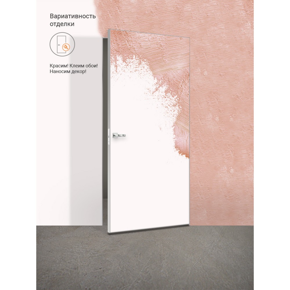 Инновационная система крепления дверных полотен в одной плоскости со стеной делает серию INVISIBLE универсальным решением для всех кто предпочитает, чтобы двери максимально сливались с интерьером. Такие двери-невидимки очень любят дизайнеры интерьеров за их лаконичность и возможность воплощать любые креативные идеи. Дверные полотна INVISIBLE можно красить , оклеивать обоями, покрывать декоративной штукатуркой. В комплекте поставки дверного блока уже идет итальянская дверная фурнитура (магнитный замок и скрытые петли), врезанная в заводских условиях. Полотна устанавливаются на сверхпрочный и надежный Алюминиевый короб замкнутого профиля. Полотна прямого открывания при входе в помещение открываются "на себя"