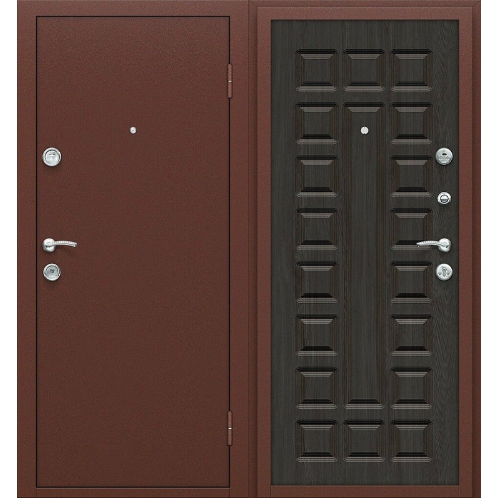 Входная дверь класса Комфорт с наружным открыванием. Изготовлена из легированной холоднокатаной стали. Двери поставляются в правом и левом исполнении.