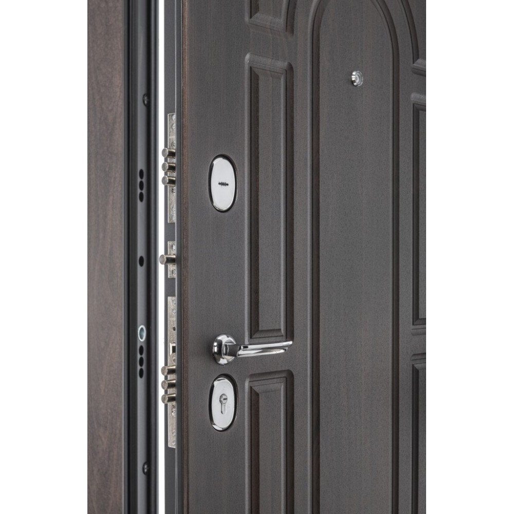 | Усиление | Сверхпрочная конструкция "6x2" - двойная толщина стали профиля полотна, двух контуров коробки, в зонах замка и петель. Дополнительную безопасность обеспечивают два противосъемных штыря |